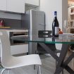 L'appartamento dispone di una zona giorno con divano-letto e TV a schermo piatto, un tavolo per massimo quattro persone ed una cucina abitabile affacciata sul soggiorno attrezzata con elettrodomestici in acciaio inossidabile e stoviglie in porcellana.