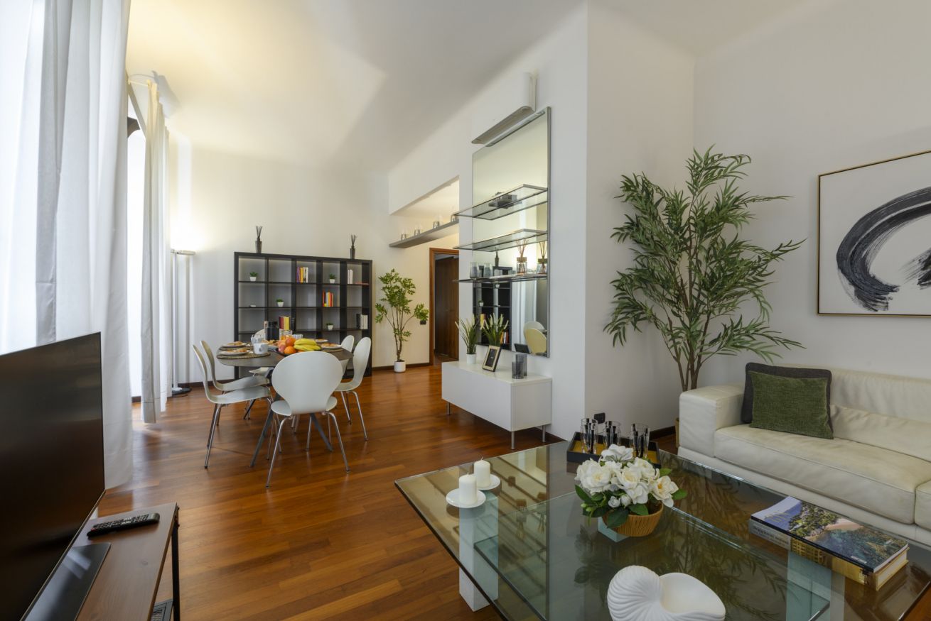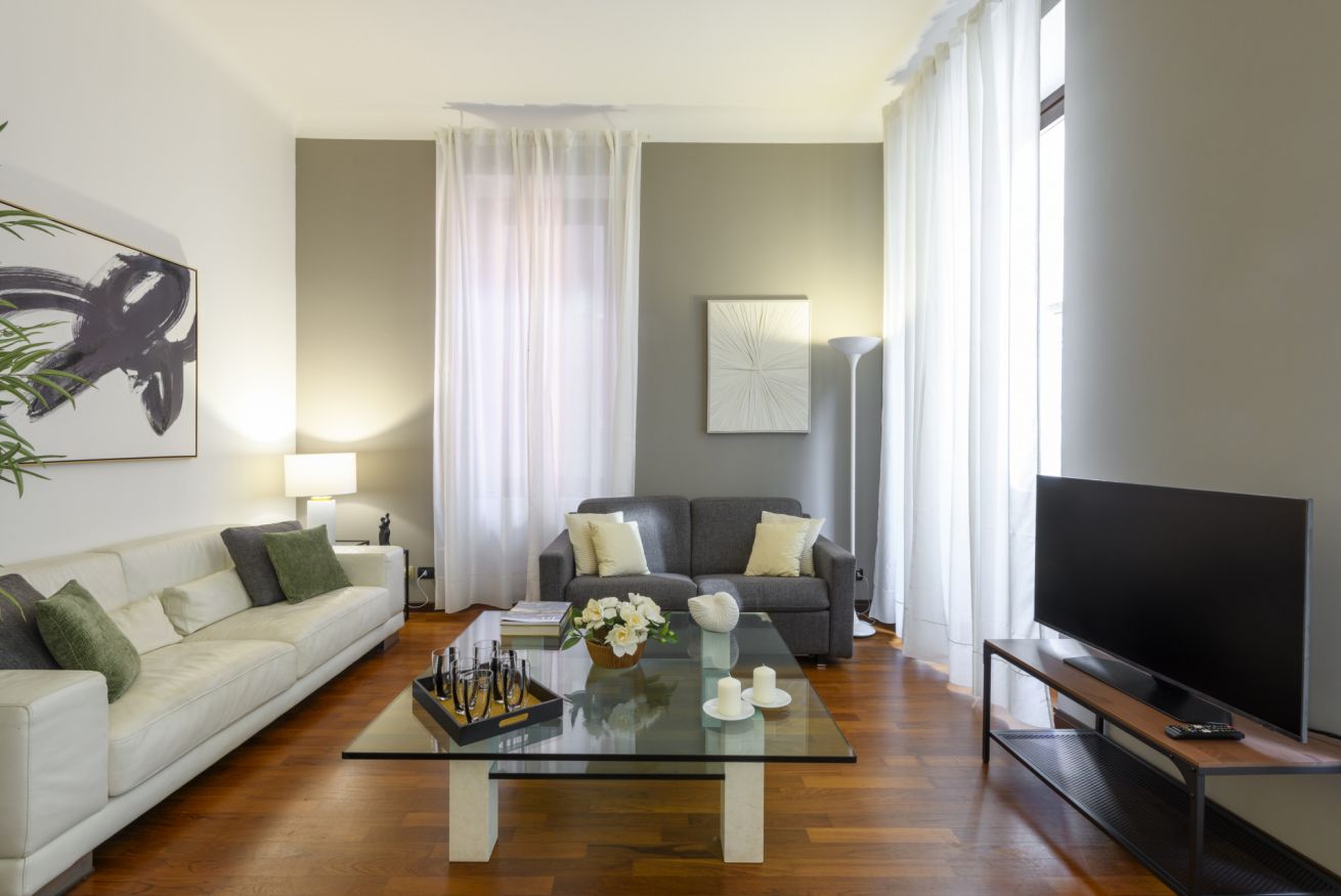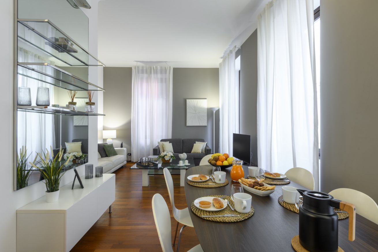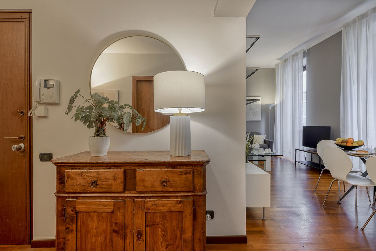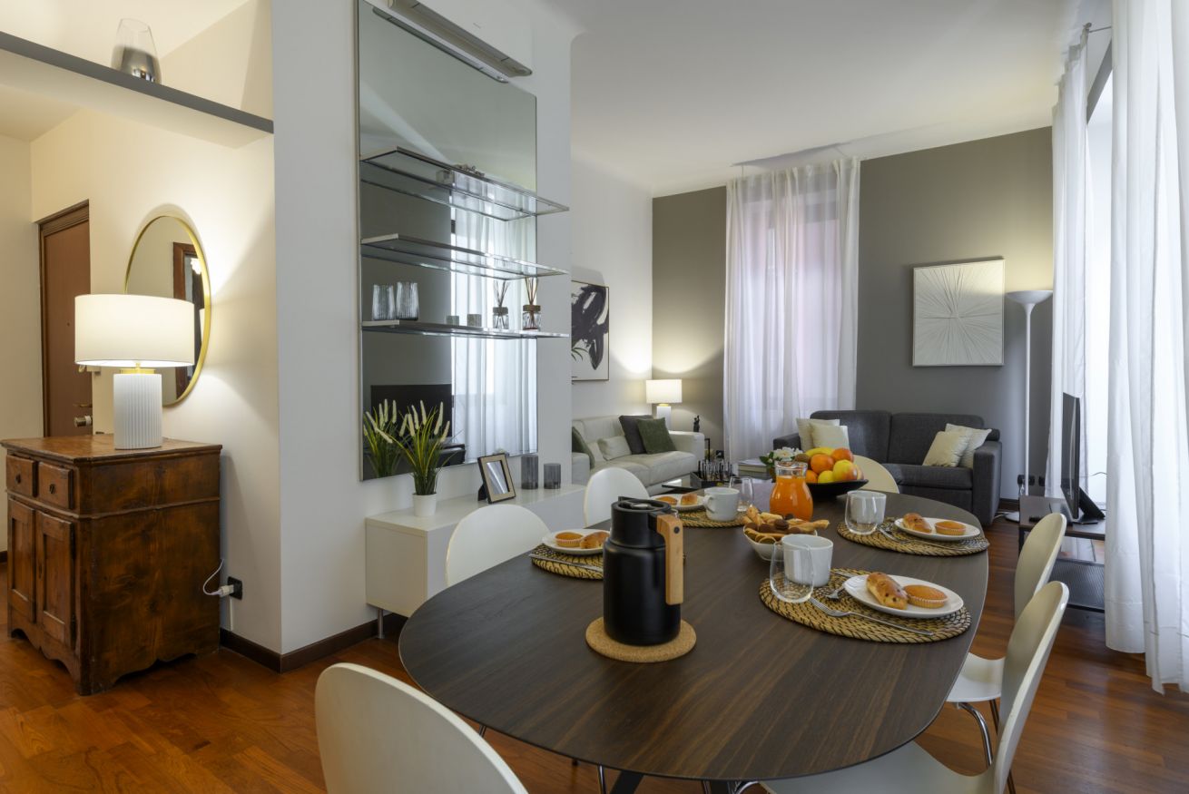 L’appartamento, di circa 110 mq, è situato al primo piano con ascensore all’interno di un elegante palazzo storico di Milano, che conserva tutto il fascino dell’architettura d’epoca unito al comfort moderno. Gli ambienti sono ampi, luminosi e ben distribuiti, pensati per garantire funzionalità e comodità durante il soggiorno.