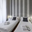 La zona notte è composta da due camere da letto: una con un ampio letto matrimoniale queen size, l’altra con due letti singoli, entrambe arredate con cura e dotate di un capiente armadio, ideale per organizzare al meglio i propri effetti personali.