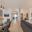 Zona giorno: spaziosa cucina abitabile, grande zona pranzo con tavolo per 8 persone, zona living con due divani di cui uno trasformabile in letto matrimoniale, scrivania e televisore da 50”.