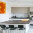 La cucina con isola centrale è interamente attrezzata con lavastoviglie, grande frigorifero con freezer, forno a microonde, forno, fuochi ad induzione, macchina per il caffè e bollitore.