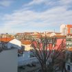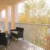 Si entra direttamente nell'ampio soggiorno con vetrata sul grande terrazzo, circa 30 mq di spazio all'aperto con tavolino e poltroncine e con vista sulle grandi chiome degli alberi prospicienti.