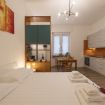 Entrando, verrete accolti da un unico spazio progettato in modo funzionale e accogliente: un comodo letto matrimoniale, una cucina a vista e un tavolo per i pasti, perfetto per rilassarsi o lavorare comodamente. Il cucinotto è ben attrezzato, dotato di tutti gli elettrodomestici e gli accessori necessari per preparare i vostri piatti preferiti. Troverete un piano cottura a gas, un forno elettrico, un frigorifero capiente con freezer separato, un bollitore elettrico e una macchina per il caffè Nespresso, per iniziare la giornata con una bevanda di qualità.