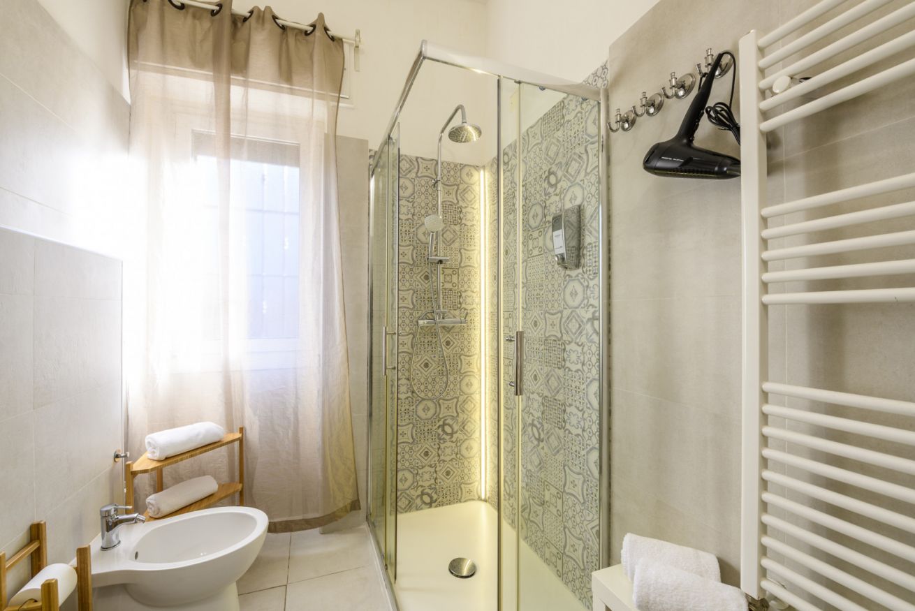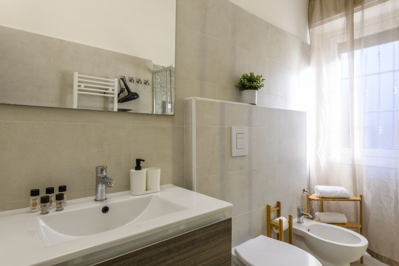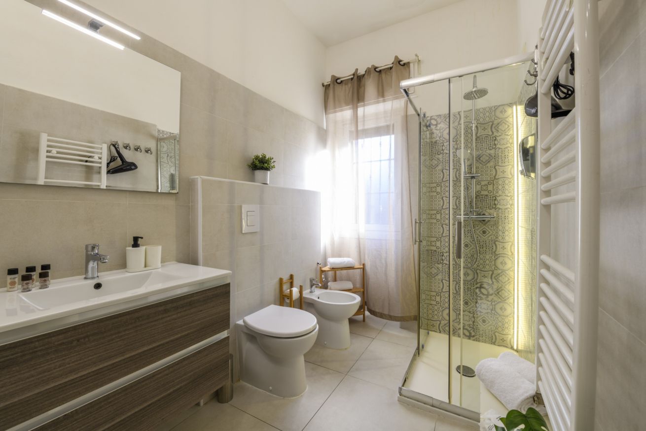 Il bagno, illuminato da luce naturale, è dotato di doccia e corredato di tutto il necessario per il vostro comfort.