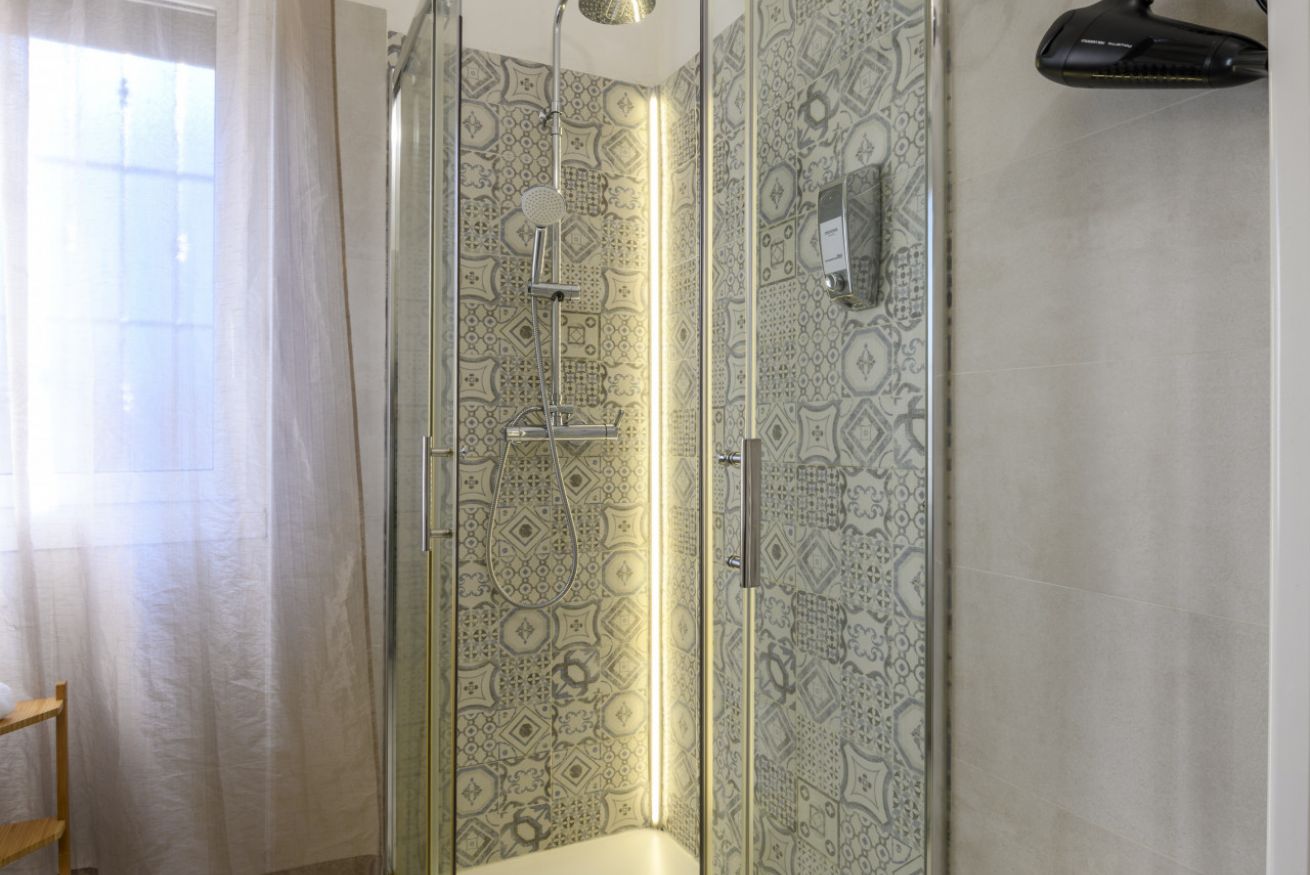 Il bagno, illuminato da luce naturale, è dotato di una comoda doccia.